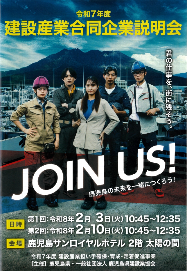 この合同企業説明会は、鹿児島県内の工業系高校生・専門学校生を対象に、建設産業および地元企業の魅力や仕事内容、採用条件等の情報を提供することで、生徒・学生みなさんの就職活動を応援するイベントです。